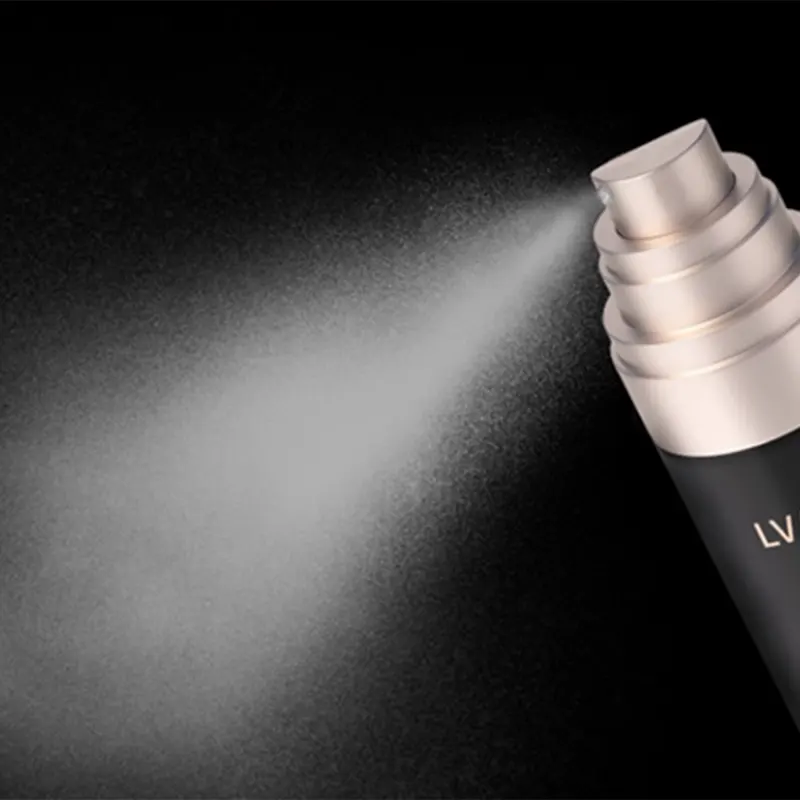 Sluit je ogen en mond volledig en druk vervolgens de pomp stevig om het gezicht gelijkmatig te mist terwijl je de fles 6 tot 10 inch afstand van de huid houdt.