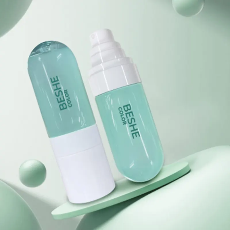 Sluit je ogen en mond volledig en druk vervolgens de pomp stevig om het gezicht gelijkmatig te mist terwijl je de fles 6 tot 10 inch afstand van de huid houdt.